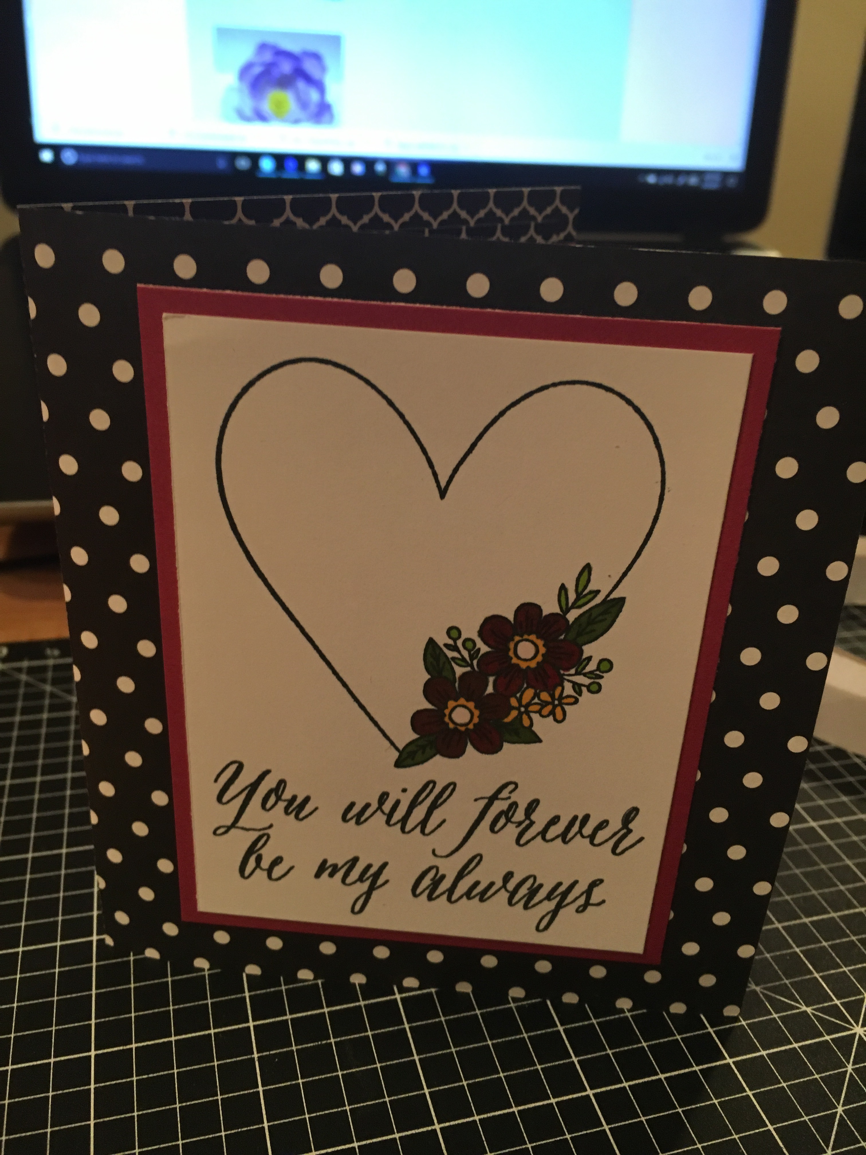 img_5849 I used the CTMH Stamp of the Month from January and colored it in with the Shin Han markers. img_5850 I cut the card base and inside from a retired CTMH paper pack called La Vie En Rose.