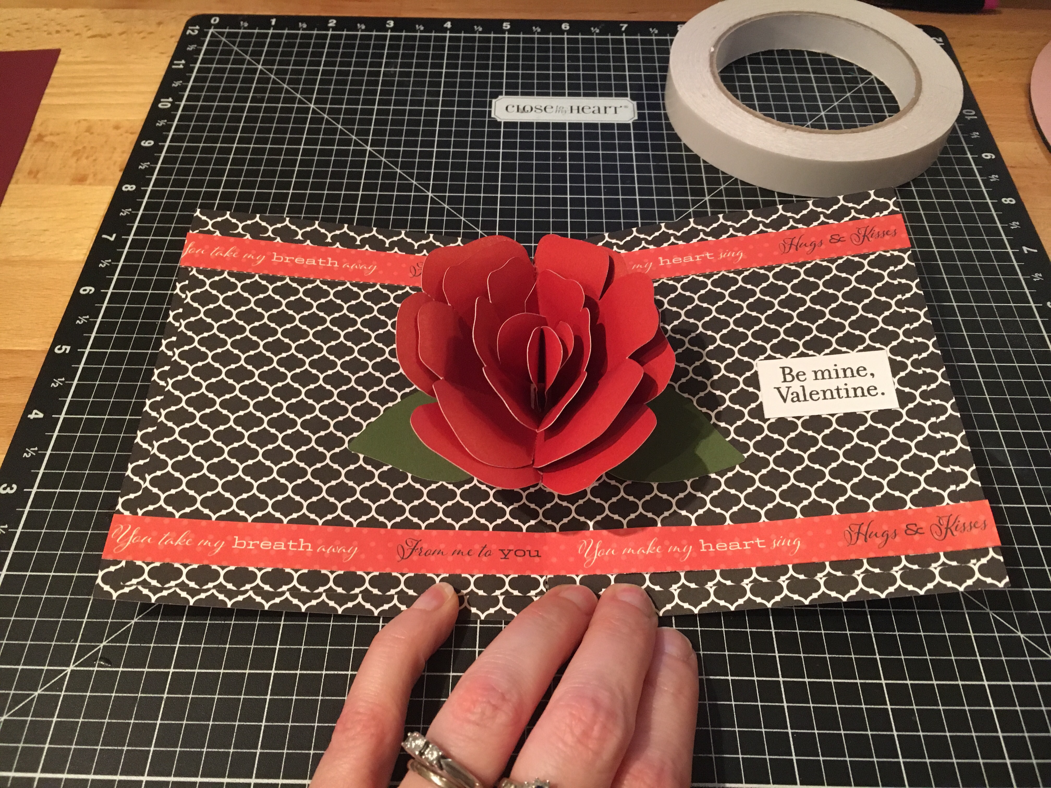 I used the cut file I found at Paper Pulse for the Rose pop up card and cut the pieces out of card stock. And then I referenced her instructions on how to piece it together and assemble the card.